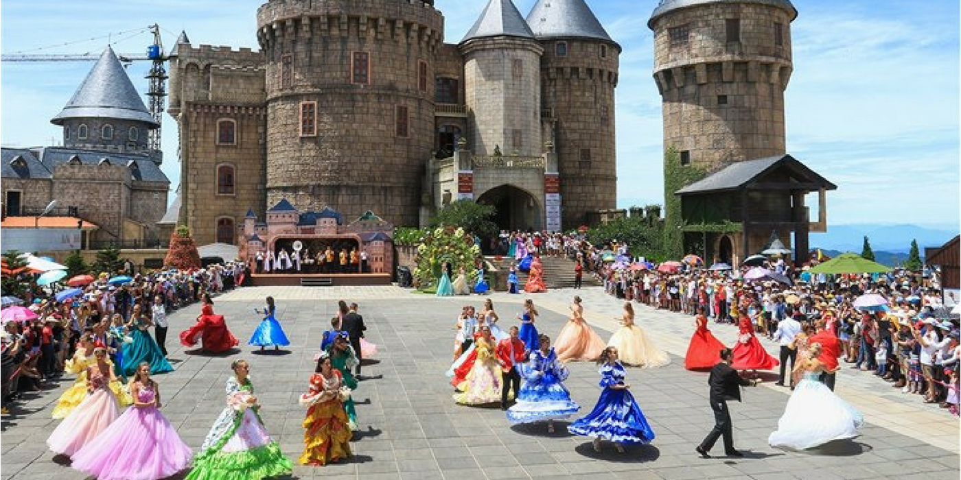 Explore Ba Na hill, get blown away by the mysterious architectural structures of Golden Bridge with Giant Buddha Hands. Suspended almost 4,600 feet above sea level, the bridge combines eight sections and stretches 500 feet long. The hands appear weathered as if constructed centuries ago. Visitors can stroll through rows of purple chrysanthemums for uninterrupted views of the rolling Trường Sơn Mountains.